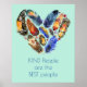 Um poster com uma mensagem inspiradora positiva. Pessoas bonitas são as melhores pessoas. Um design de cor d'água de pena em forma cardíaca. As cores incluem amarelo, laranja, azul, verde e marrom. Alguns têm listras, pontos, padrões tribais e outros arranjos decorativos únicos. Colocado sobre um fundo verde da casa de banho.