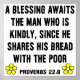 Lê-se, " Uma bênção espera o homem que é bondoso, pois ele divide seu pão com os pobres." Palavras de sabedoria do Livro de Provérbios 22:9 na Bíblia. Presente maravilhoso para seu cristão favorito ou qualquer pessoa que pense de forma espiritual. Ótimo para aniversários, Natal, Dia dos Pais, Dia das Mães ou qualquer dia especial.
