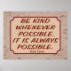 Seja gentil sempre que possível. É sempre possível. Citação do Dalai Lama - Impressão de Arte
