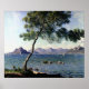"No Boné d'Antibes" captura a beleza serena e iluminada pela Riviera francesa. Esse trabalho reflete um fascínio pelos efeitos da luz e da cor sobre a paisagem. A pintura retrata uma cena litorânea tranquila com águas azuis cintilantes, areias ouros e os Alpes distantes. O primeiro plano é dotado de uma vegetação mediterrânica vibrante, como os pinheiros e as oliveiras, que se transformam com delicada escova para transmitir movimentos e luz. A atmosfera global é pacífica e idílica, incorporando o calor e a vibração da costa sul francesa. Essa pintura é um excelente exemplo de domínio na captação das qualidades transitórias da natureza, que é central ao estilo impressionista.