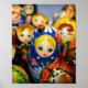 Pintura colorida de bonecas russas nidificantes, bonecas Matryoshka. A que aparece no centro tem uma joia bonita na cabeça.