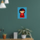 Bonita boneca tradicional Kokeshi japonesa em design vermelho e azul. Tema japonês muito bonito