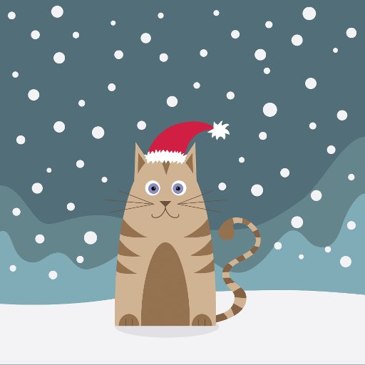 Papais noeis de desenho se comportam em paisagens de neve desejando natal meowy. Gato engraçado bonito com Papai Noel que diz saudações de feriado.