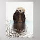 Bonito e adorável animal fofo, com as mãos nas bochechas nas reflexões de água, imagem impressão