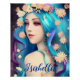 Poster personalizada com arte de conto de fadas. Uma fada Bonito com cabelo azul e flores no cabelo e olhos azuis. Fantasy art ai art. conteúdo generativo