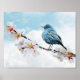 O pássaro azul mais bonito que vocês já viram, empoleirado entre as flores de maçã de cereja, preenche o ar com sua melodiosa canção. Seus apitos alegres e malvados criam uma sinfonia que ecoa a promissora promessa de primavera.