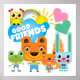 Amigos de animais bonitos, coloridos e divertidos, camisetas design, bíblias, cobertores, panos de arroto, conjuntos de banheiro, relógios de parede, bolsas, canecas, guardas, e mais recursos de coruja, urso, esquilo, coelho e sapo, sol, arco-íris, corações e nuvem com texto que lê Bons Amigos!