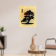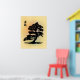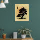 Mostra um desenho preto e branco de um clássico bonsai com "Bonsai" em personagens kanji.