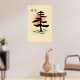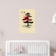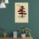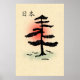 Mostra um desenho preto e branco de um clássico bonsai com "Japão" em personagens kanji.