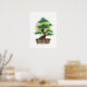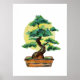 pintura aquarela tradicional de uma árvore bonsai em um pote marrom diante do sol como uma impressão de poster decoração.