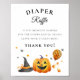 Um pequeno cartaz de fralda de abóbora de Halloween. Design moderno do Halloween para uma festa de dois! Esta placa de chá de fraldas apresenta uma abóbora, um chapéu de bruxa, um balão, cornos doces e estrelas. Esta placa é excelente para meninas e chás de garotos!