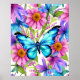 Borboleta Azul Num Campo de Flores, esta design apresenta uma bela Borboleta Azul num Campo de Flores.