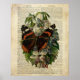 Borboleta de arte floral na página do dicionário de vintage azul vermelho