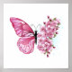 Arranjo de flores de borboleta cor-de-rosa com cereja japonesa cor-de-rosa floresce em fundo branco.