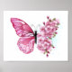Arranjo de flores de borboleta cor-de-rosa com cereja japonesa cor-de-rosa floresce em fundo branco.