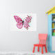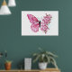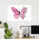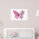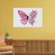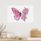 Arranjo floral de borboleta rosa com flores de cerejeira japonesa rosa em fundo branco.