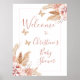 Rosa Dourado Boho Floral Butterfly Kisses Chá de fraldas Sinal de boas-vindas Beijos modernos de borboleta e bebezinho Sinal de boas-vindas do chá de fraldas apresentando um estilo boêmico arranjo floral seco com grama pampas e texto cor de pampas. O design também apresenta três borboletas falsas de ouro-rosa-reluzente.