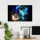 Fabulosa, brilhante, azul e amarela, borboleta noturna sobre fundo escuro.