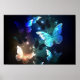 Fabulosa, brilhante, azul e amarela, borboleta noturna sobre fundo escuro.