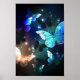Fabulosa, brilhante, azul e amarela, borboleta noturna sobre fundo escuro.