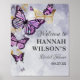 Personalize este cartaz de boas-vindas Borboleta Roxa Dourado Cinza Chuveiro de Noiva Elegante com seus detalhes de forma fácil e rápida. Todos os textos são editáveis!. Para personalização mais avançada deste design, basta selecionar o botão 'Personalizar / Personalizar este modelo' acima! Itens correspondentes disponíveis na coleção!