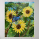 Poster Borboleta sobre Girassóis