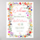 Borboletas modernas vaiam flores brilhantes selvagens bridal sinal de boas-vindas ao chá de panela boêmico. Apresentando flores botânicas de matizes cor-de-rosa, vermelha, verde e roxa inspiradas em flores silvestres e jardins rústicos de aquarelas com um verde sutil e uma tipografia moderna de matizes.