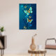 Ouro voador, borboleta de joias em fundo textural azul. Design com borboletas.