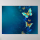 Ouro voador, borboleta de joias em fundo textural azul. Design com borboletas.