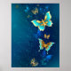 Ouro voador, borboleta de joias em fundo textural azul. Design com borboletas.