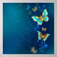 Poster Borboletas de ouro em um fundo azul