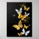 Borboletas Douradas, joias e brancas sobre fundo preto. Borboleta ouro.