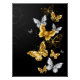 Borboletas Douradas, joias e brancas sobre fundo preto. Borboleta ouro.