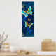 Voando ouro, borboleta jóia em fundo textural azul. Design com borboletas.