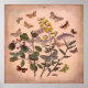 Poster Borboletas Florais Botânicas Vintage Rosa Russo