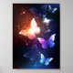 Borboletas brilhantes à noite num fundo abstrato escuro. Borboletas noturnas. Design com borboletas.
