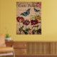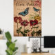 Borboletas venenosas e flores botânicas em antigos fundos postais florais franceses.