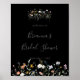 Este cartaz de boas-vindas floral preto multicolorido floral é perfeito para um chuveiro moderno de casamento. A design apresenta flores elegantes, cor-de-água, cor-de-rosa, pincelada, roxa, marinho e branca, com folhas verdes esmeraldas em fundo escuro.