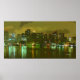 As luzes dos prédios costeiros de Boston brilham e criam imagens coloridas fantasmagóricas nas águas ainda portuárias à meia-noite.