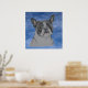 Retrato de um lindo cão aterrorizado de Boston com um céu azul e nuvens de fundo. Obrigados para ver as minhas designs.