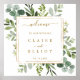 Este sinal de boas-vindas do casamento mostra cor d'água eucalipto verde, folhas verdes com uma estrutura quadrada de ouro. Para personalização mais avançada deste design, clique no link "Personalizar mais". Itens correspondentes também estão disponíveis.