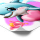 Boto Bebê Fofo com Coração de São Valentim, este design apresenta um Boto Bebê Fofo com Coração de São Valentim que é hiper-realista, com detalhes intrincados, ilustração, pintura, Chibi kawaii, desenho animado. Este gráfico é perfeito para quem ama golfinhos e para quarto de criança ou berçário, como decoração de berçário.