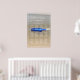 This design features a bottle laying on the beach. The beautiful blue bottle color contrasts against the golden sand creating a perfect match. The white fine lined border perfectly frames the washed up blue bottle on the sand and matches the modern white colored typography. Romantic beach design with a blend of simplicity and elegance. This design is ideal for a beach destination or blue themed wedding. The perfect summer blue beach wedding seating chart design. Matching wedding invitations and other stationery items are also available.