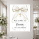 A large ivory colored bow with pearls and a golden cross as decoration. Personalize and add her name.
