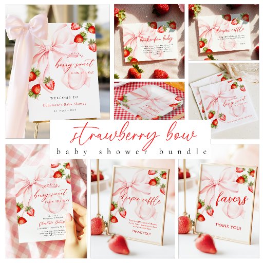 Poster Bow Strawberry Baby Shower Favors Sign