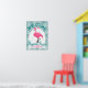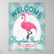 Boynton Beach Flórida rosa flamingo. No estilo de posters viagens vintage, diz "Bem-vindo à praia de Boynton, Flórida" em turquesa verde rosa, branca e menta.