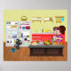 Deixe-se levar para um mundo de delícias culinárias com este pôster cativante! Com uma mulher de desenho animado cozinhando em sua cozinha, este design é uma mistura perfeita de charme e humor. A imagem mostra uma deliciosa mesa de café da manhã, incluindo panquecas, xarope, café, frutas e pão, todos lindamente ilustrados. Enquanto a mulher traz seu leite para o balcão, seu gatinho curioso olha para dentro da geladeira aberta, adicionando um toque extra de fofura. Cubra sua parede com este pôster único e adorável para criar uma atmosfera aconchegante e convidativa em sua cozinha. Também é um presente maravilhoso para amantes de gatos que apreciam a arte da culinária.