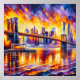 A ponte do Brooklyn, uma maravilha arquitetônica terminada em 1883, simbolizou a inovação industrial e a elegância urbana. Seus varredores e cabos de aço conectam Brooklyn a Manhattan, incorporando glamour de eterno e significância histórica.Usando o estilo acrílico com tons de ouro e lavanda nesta maravilha icônica.