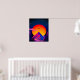 Eu espero que vocês gostem dessas cores néon brilhantes, cor de laranja, vermelha, rosa quente, roxo e azul marinho e montanhas com um avião no fundo.
