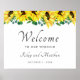 Esta bela placa de boas-vindas aponta o caminho para o seu evento. Possui girassol amarelo brilhante e verde. Personalize com seus nomes e data de casamento. Itens de casamento iguais estão disponíveis na minha loja. Design ©Rosalind Moore, Design de Cherry Lane.